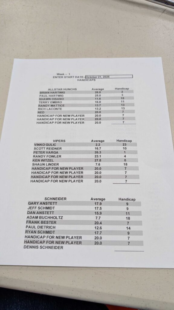 | October 21, 2025 | 7:00 pm | Tuesday Night Mens League | 2025 |