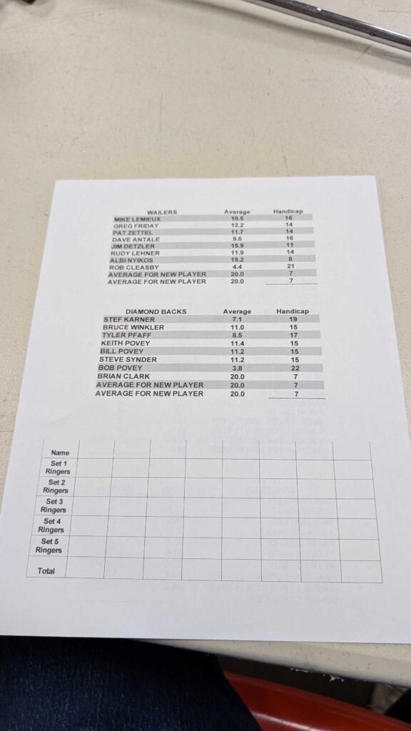 | Player | Games Played | Shoes Thrown | Hooks | O-Fers | Average | Doubles | BA | NS |