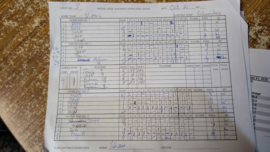 | October 21, 2025 | 7:00 pm | Tuesday Night Mens League | 2025 |