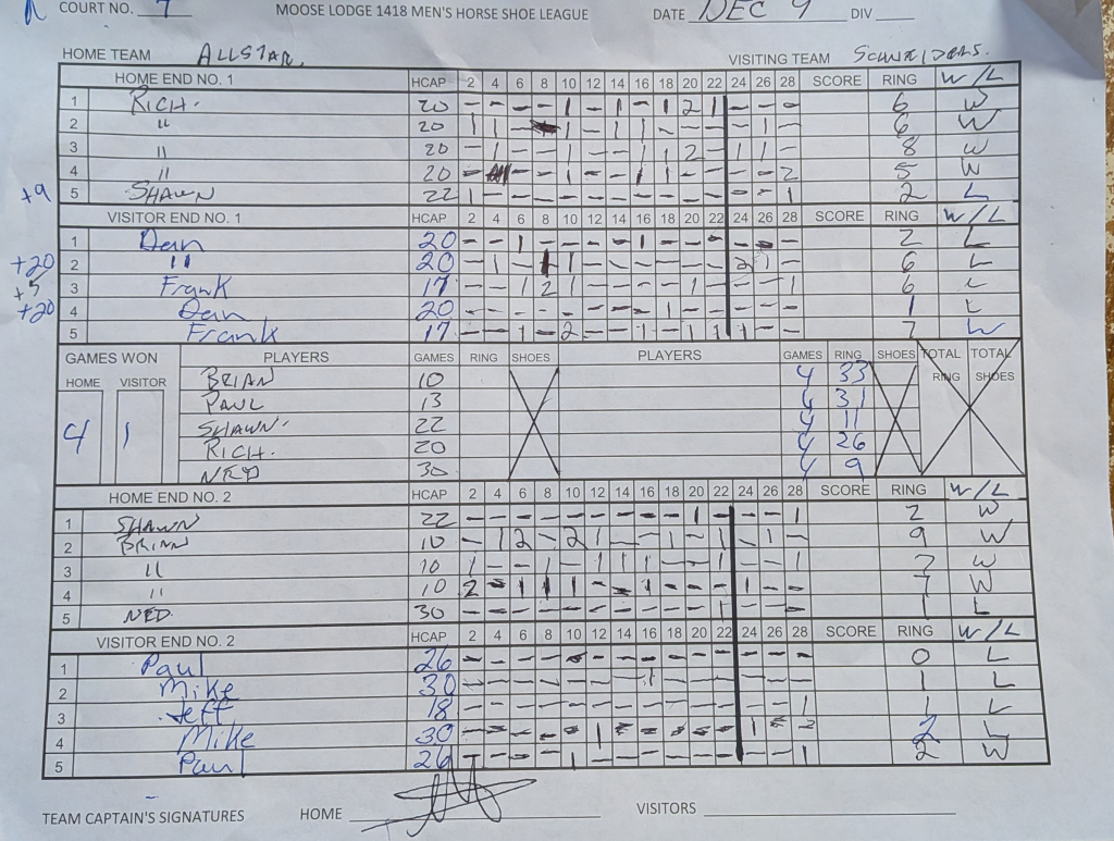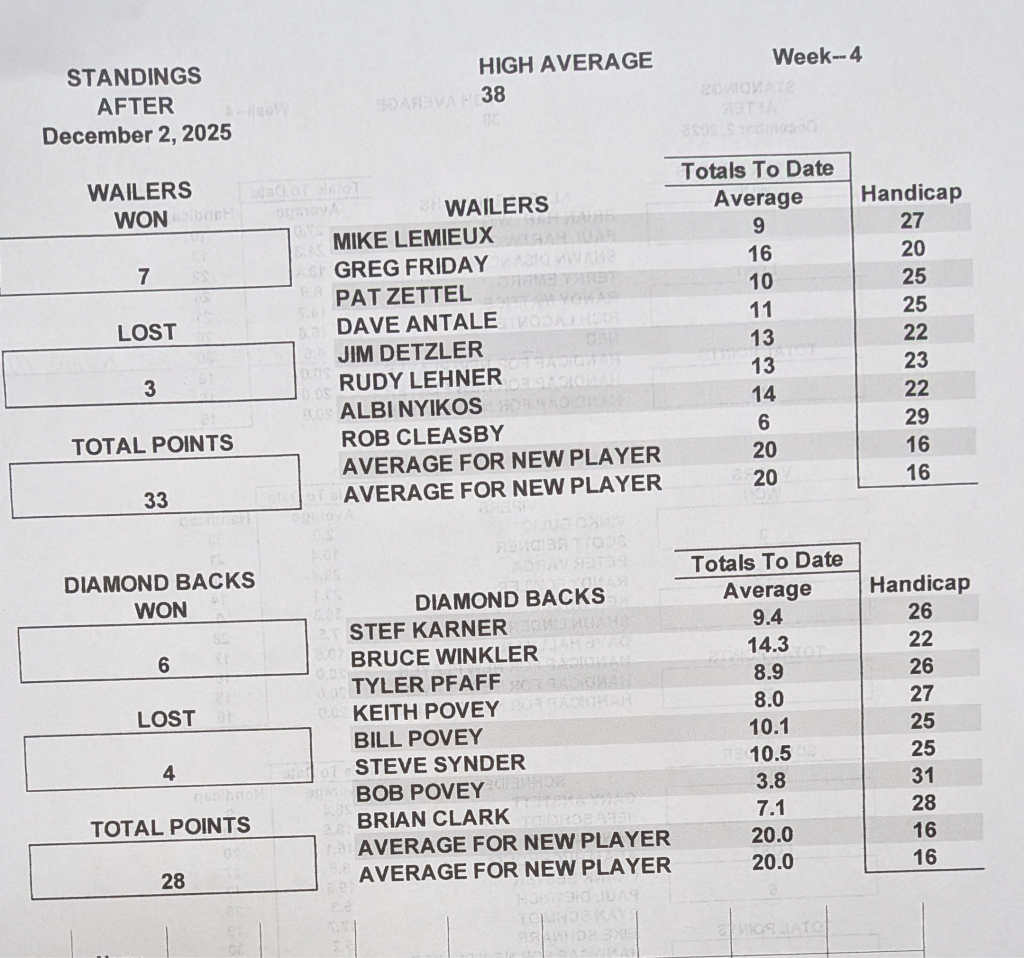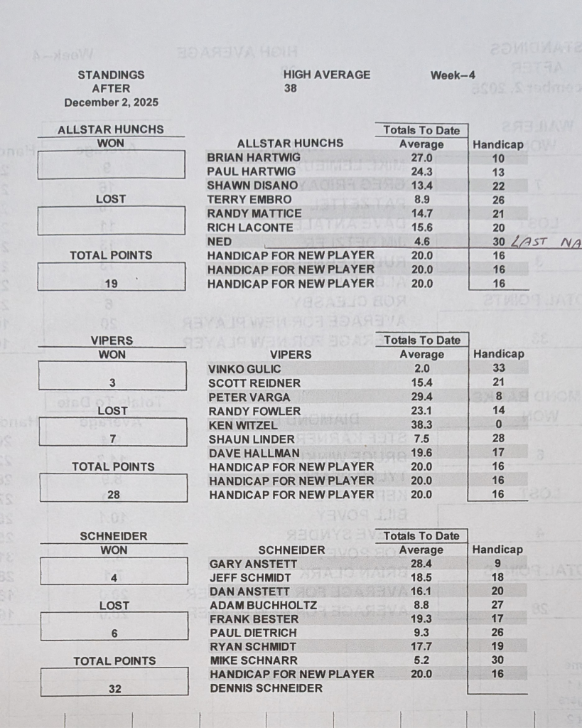 | December 9, 2025 | 7:00 pm | Tuesday Night Mens League | 2025 |